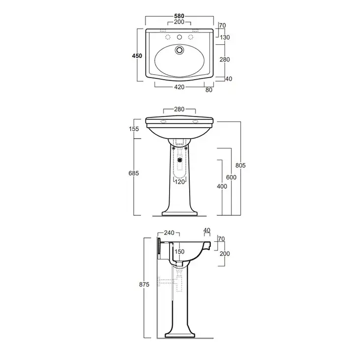 Simas Londra Раковина подвесная 58х45 см, с переливом, 3 отверстия под смеситель, цвет: белый глянц. LO914bi*3
