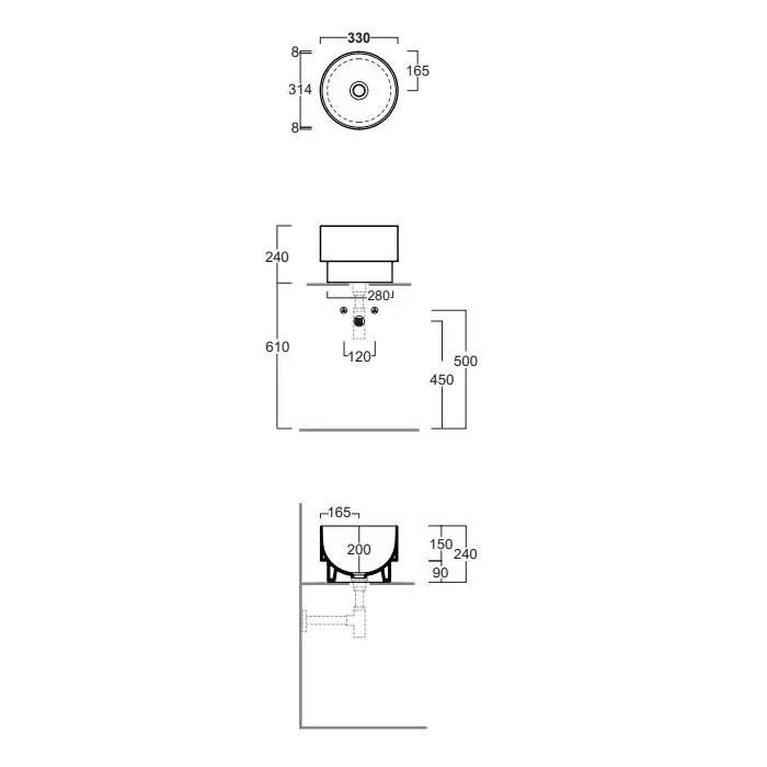 Simas Po-Mo Раковина чаша d33 см, без перелива. цвет: белый глянцевый PO03bi