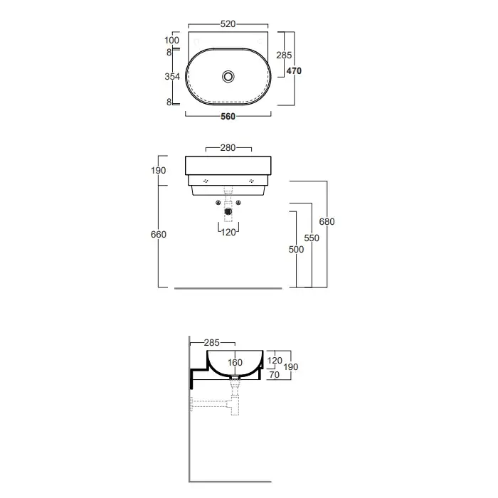 Simas Po-mo Раковина 56x47xh19Hсм., подвесная, без отв., без перелива, цвет: белый