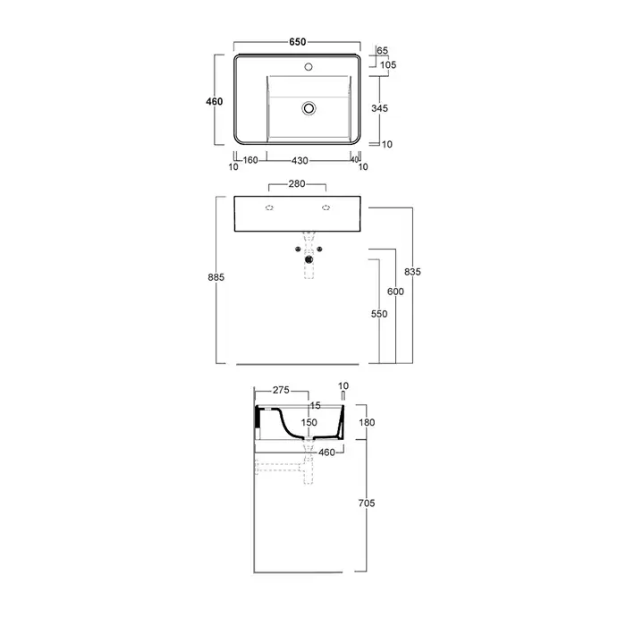 Simas Ratio Раковина чаша подвесная 65x46xh18 см, с 1 отв. для смесителя, без перелива, цвет: белый