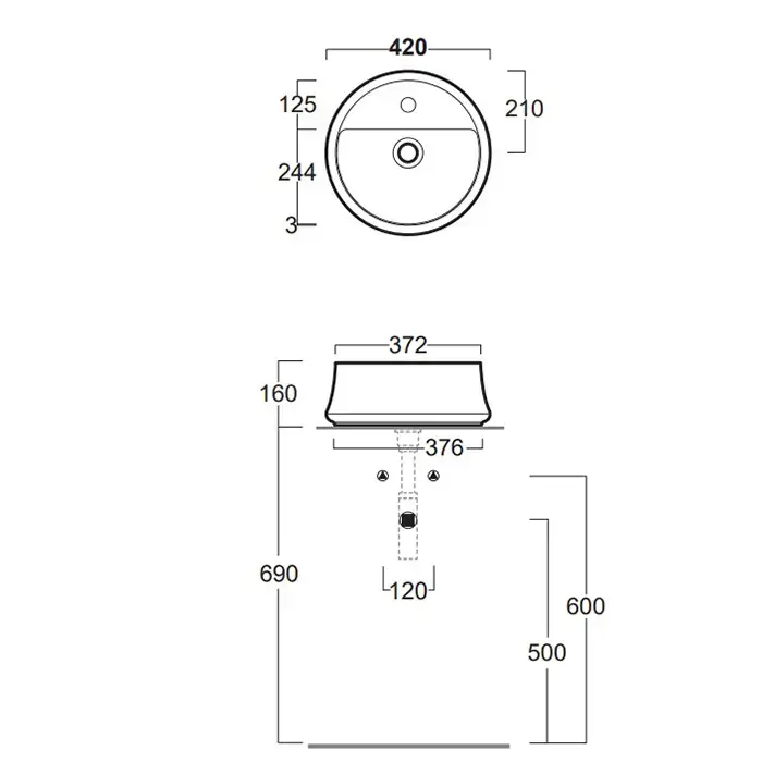 SIMAS Sharp раковина накладная, диаметр 42см, с 1 отв. под смеситель