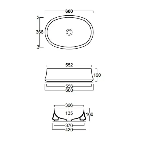 Simas Sharp Раковина чаша 60х42 см, с переливом и 1 отверстием под смеситель, цвет: белый глянцевый SH05bi*1