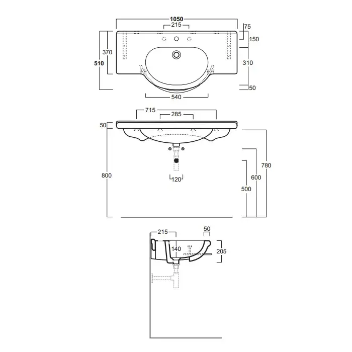 Simas Top e lavabi d'Arredo Раковина подвесная 105х51 см, 1 отверстие под смес., цвет: белый глянц. TOP 60 bi*1