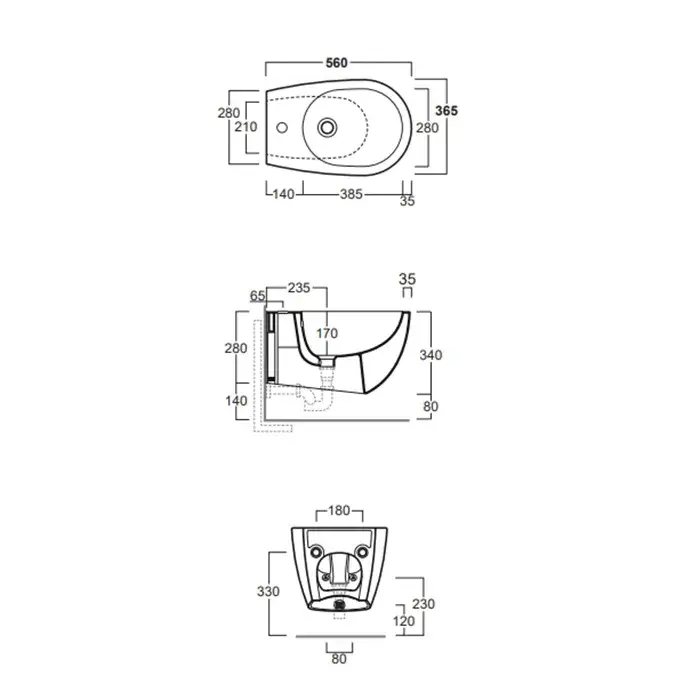 Simas Vignoni Биде подвесное 36,5х56 см, c 1 отверстием под смеситель и переливом. цвет: moka matt VI19 moka matt*1
