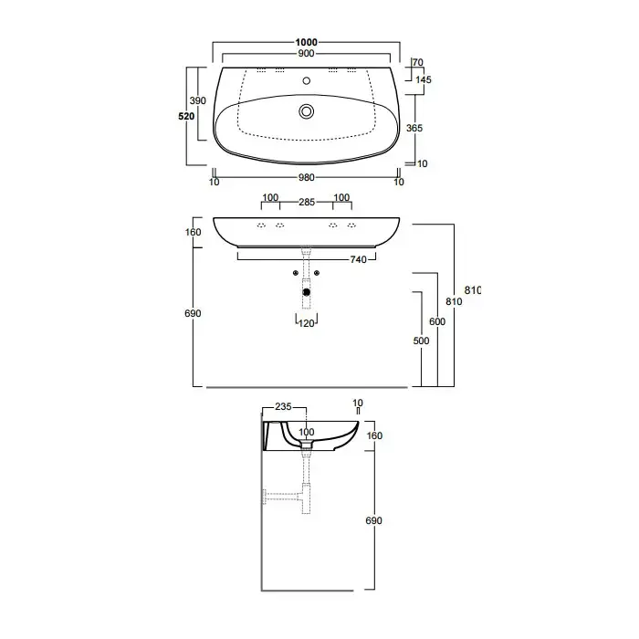 Simas Vignoni Раковина подвесная 100х52 см, с переливом, 1 отвер. под смеситель, цвет: белый глянц. VI12bi*1