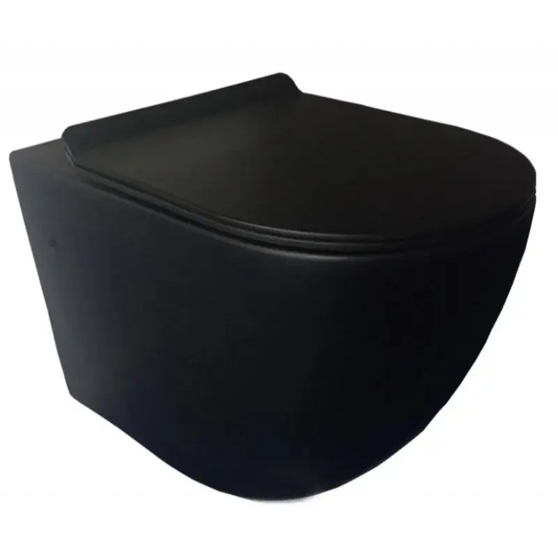 Simas Vignoni Унитаз подвесной безободковый "Rimless" 36,5х56 см, без крышки-сиденья, цвет: nero VI18nero bril