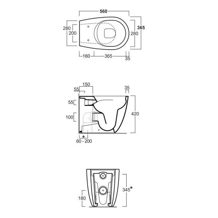 Simas Vignoni Унитаз приставной 36,5х56 см, безободковый, без крышки-сидения. цвет: antracite matt VI01 antracite matt