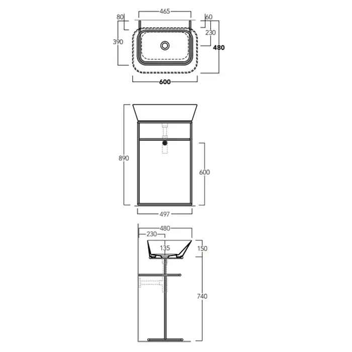 Simas Wave Структура металлическая напольная 50х40х75 см, с раковиной без отв. под смеситель, цвет: черный матовый
