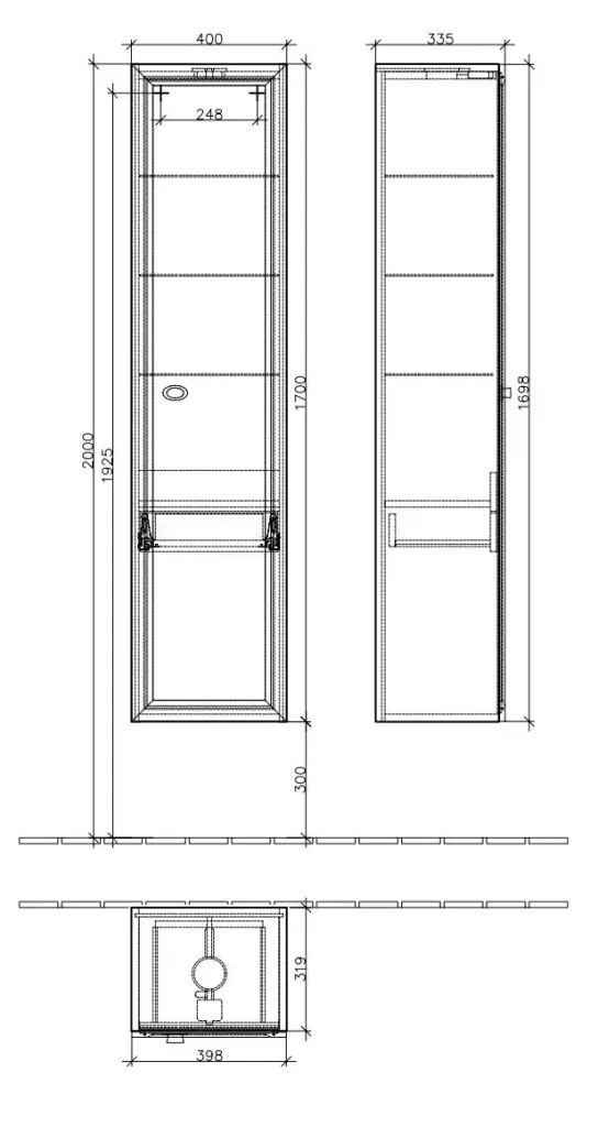Шкаф-пенал подвесной с внутренней подсветкой (1 дверца правая, 1 выдвижной ящик, 4 полки, 2 контейнера), 40*33.5*h170, лак глянцевый малиновый/хром