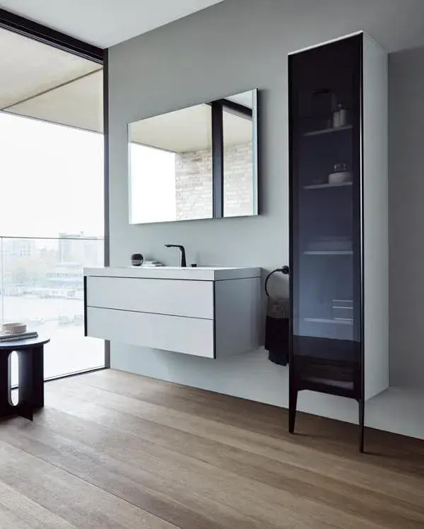 Шкаф в ванную комнату Duravit XViu XV1376RB272+XV971500000 Dark Brushed Oak-72/рама черный матовый-B2, стекло-серое матовое/ножки-черные