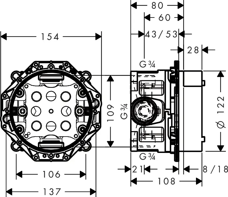 Скрытая часть смесителя-термостата для душа/ванны со встроенными запорными клапанами d12.2*15.4*10.8