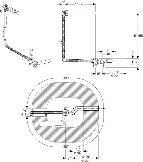 Слив-перелив Geberit с подводом воды 150.711.21.1