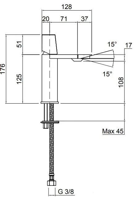 ANTONIO LUPI INDIGO Смеситель для раковины на 1 отверстие, излив 165 мм., ручкая черная матовая, цвет: сатинированная сталь