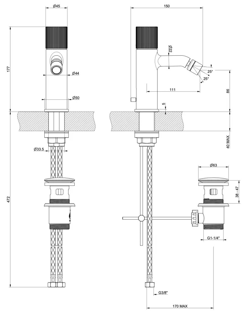 Смеситель для биде Gessi HABITO RIGATO 70507#727 цвет-браш.латунь PVD
