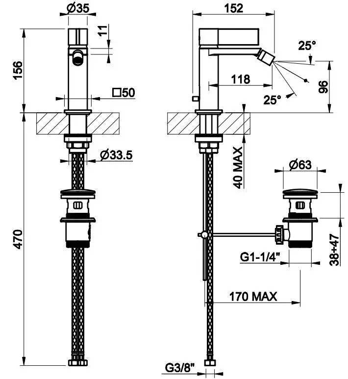 Смеситель для биде Gessi INVERSO DIAMANTATO 73607#707 цвет-black metal brushed PVD