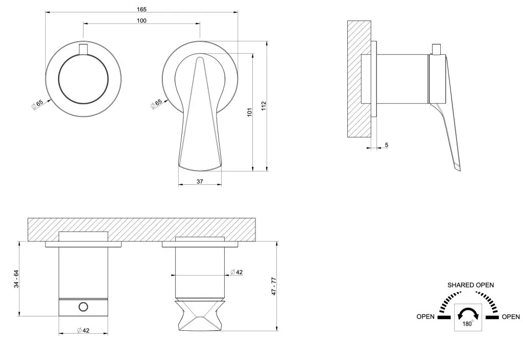 Gessi Ventaglio Внешняя часть настенного смесителя на 2 выхода с перекл ванна/душ, цвет: Matte Black