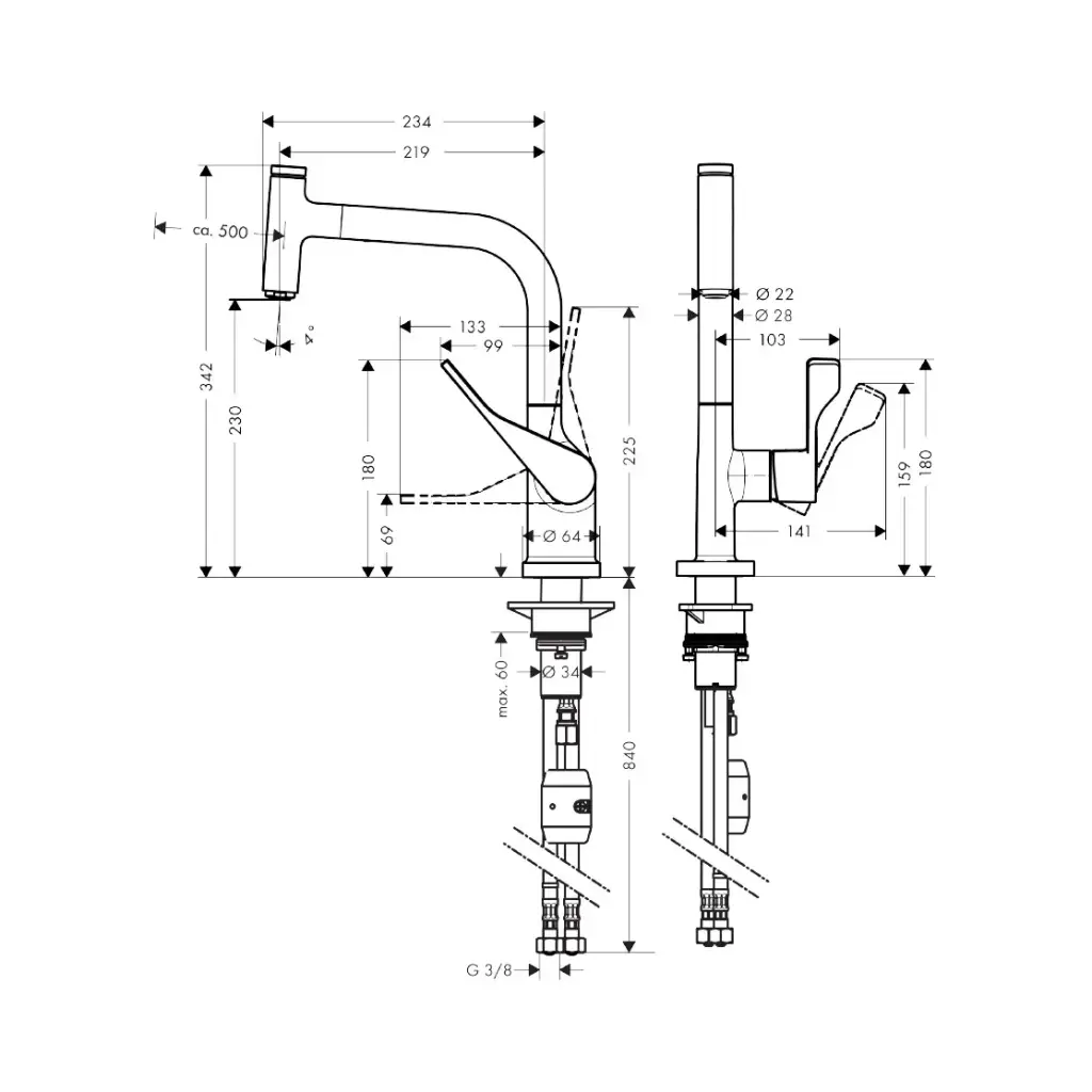 Смеситель для кухни AXOR Citterio 39861800 нержавеющая сталь