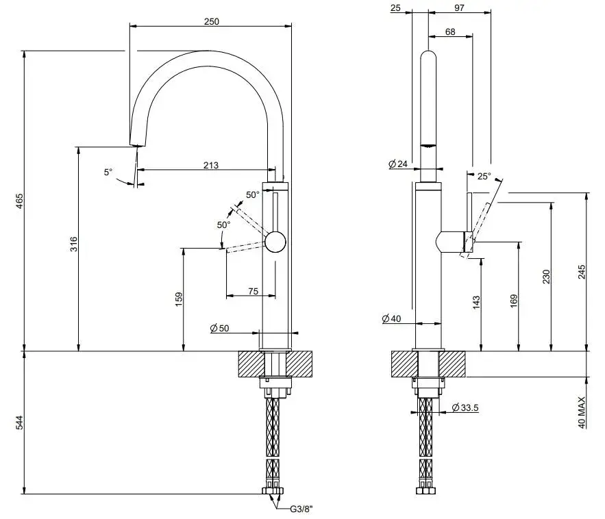 Смеситель для кухни Gessi GESSI 316 60016#727 цвет-браш.латунь PVD