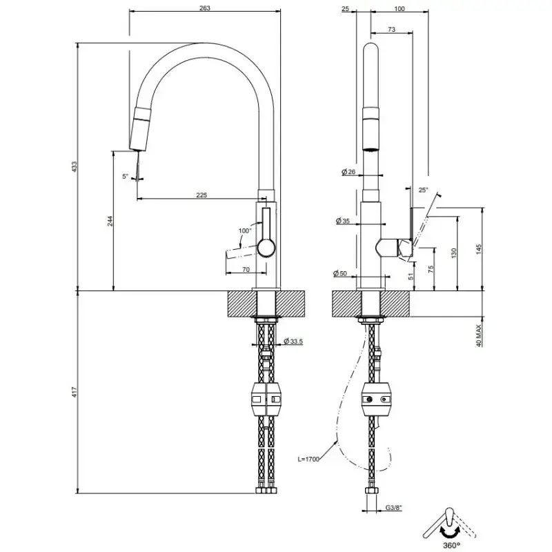Смеситель для кухни Gessi Mesh 60003#599 Finox / Matt Black