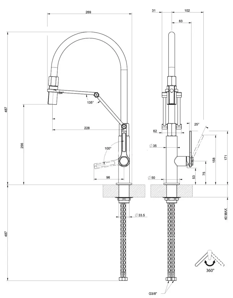 Смеситель для кухни Gessi OFFICINE 60055#149 FINOX BRUSHED NICKEL