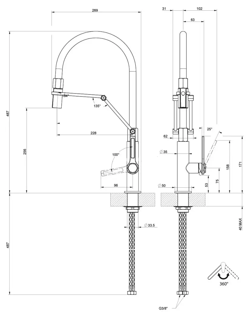 Смеситель для кухни Gessi OFFICINE 60055#149 FINOX BRUSHED NICKEL