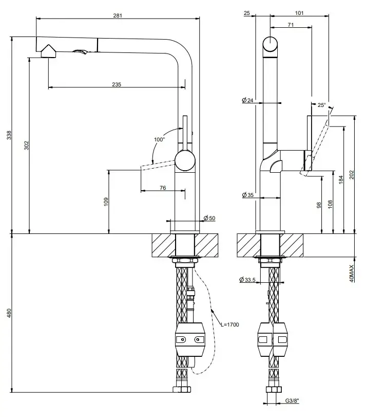 Смеситель для кухни Gessi STELO 60303#299 Matte Black XL