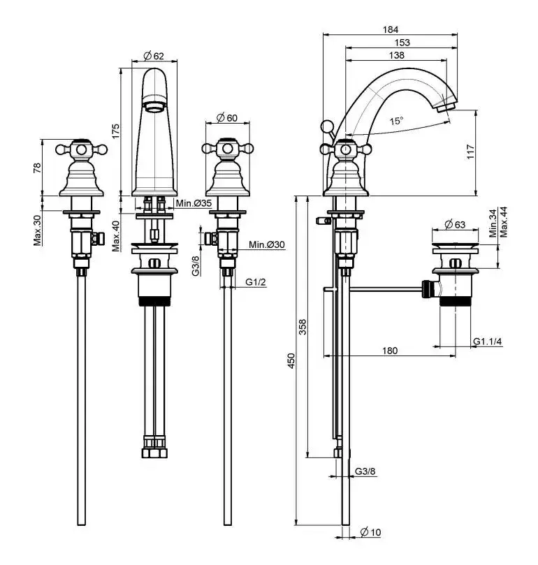 Смеситель для раковины Carlo Frattini ELIZABETH F5101BR бронза