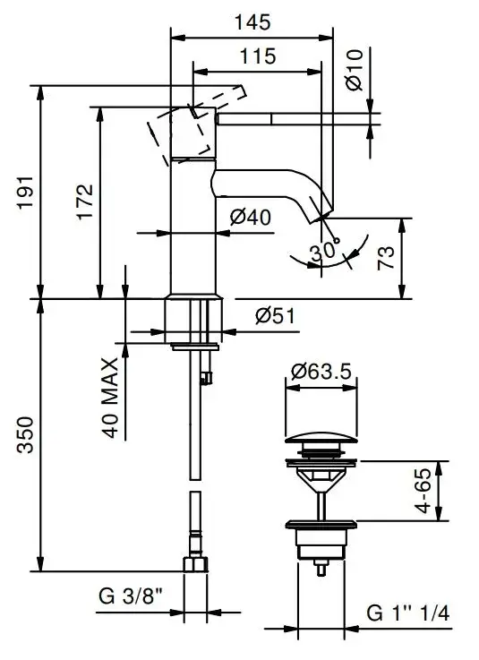 Смеситель для раковины Fantini Nostromo 50.13.E804F черный матовый