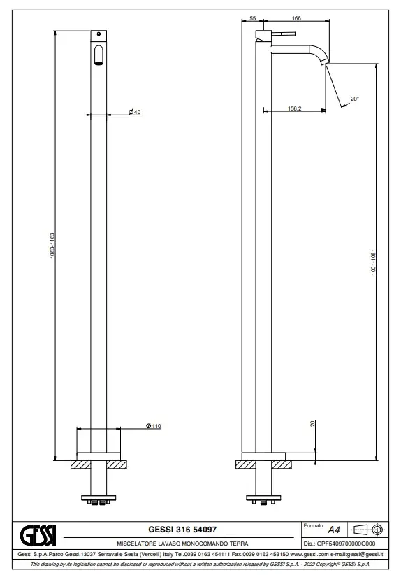 Gessi 316 Смеситель для раковины, напольный, внешняя часть, цвет: Black XL