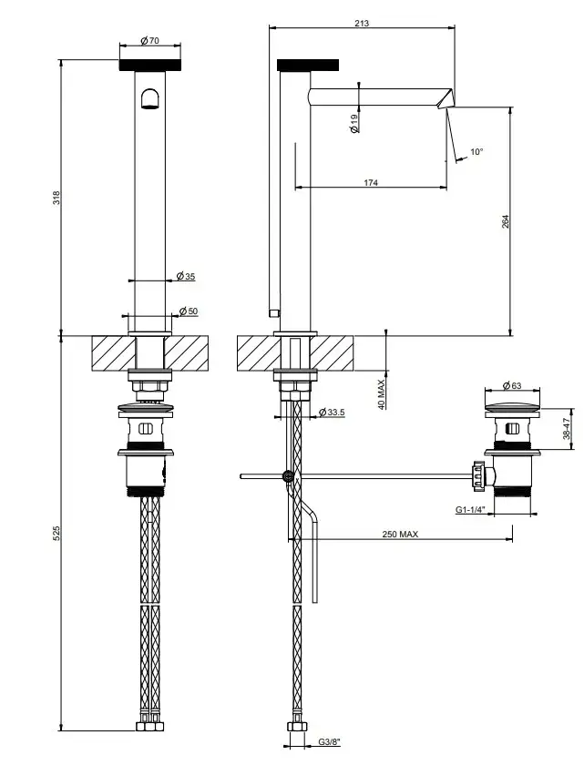 Смеситель для раковины Gessi ANELLO 63305#187 бронза состаренная