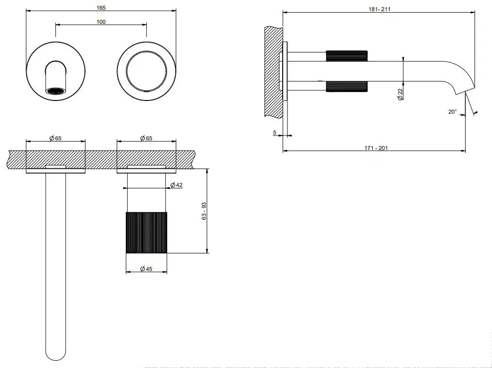 Смеситель для раковины Gessi HABITO RIGATO 70595#707 цвет-Black Metal Brushed PVD