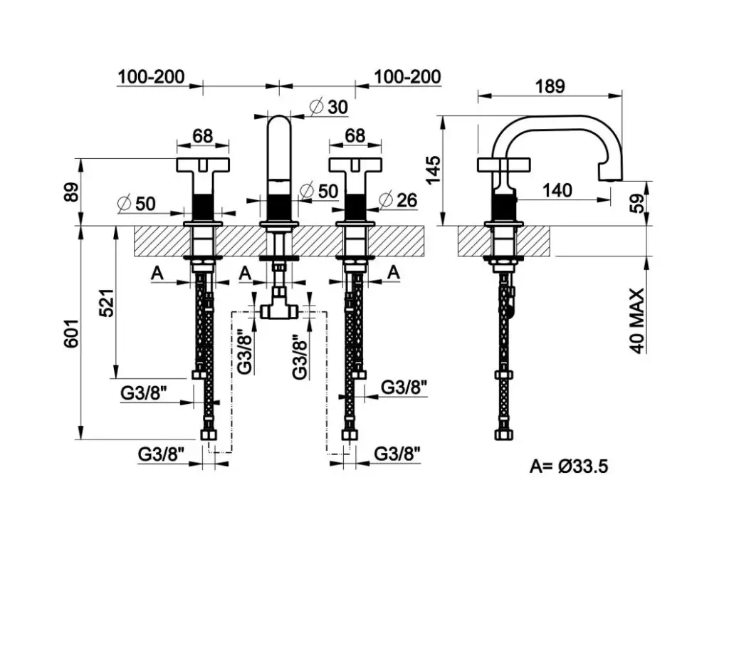Gessi Inciso+ Смеситель для раковины на 3 отверстия, без донного клапана. цвет: black XL