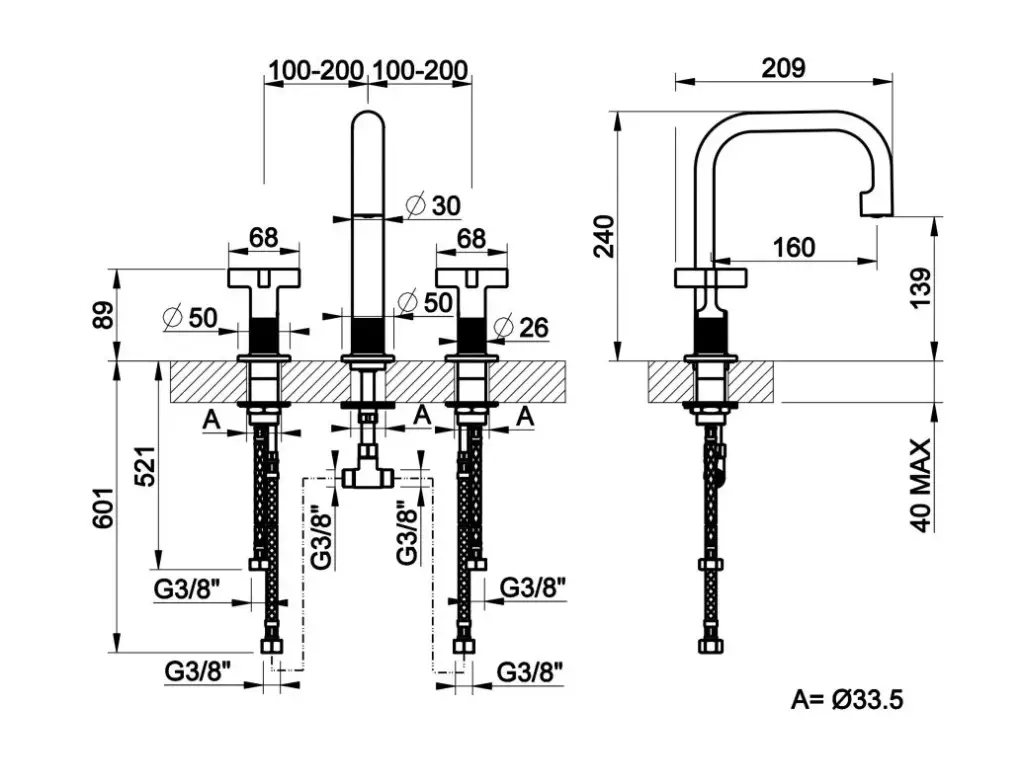 Gessi Inciso+ Смеситель для раковины на 3 отверстия, без донного клапана. цвет: black XL