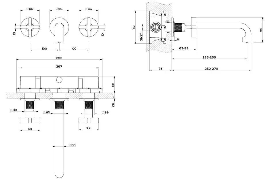 Gessi Inciso+ Встраиваемый смеситель для раковины на 3 отверстия с изливом, без донного клапана. внешняя часть, цвет: black XL
