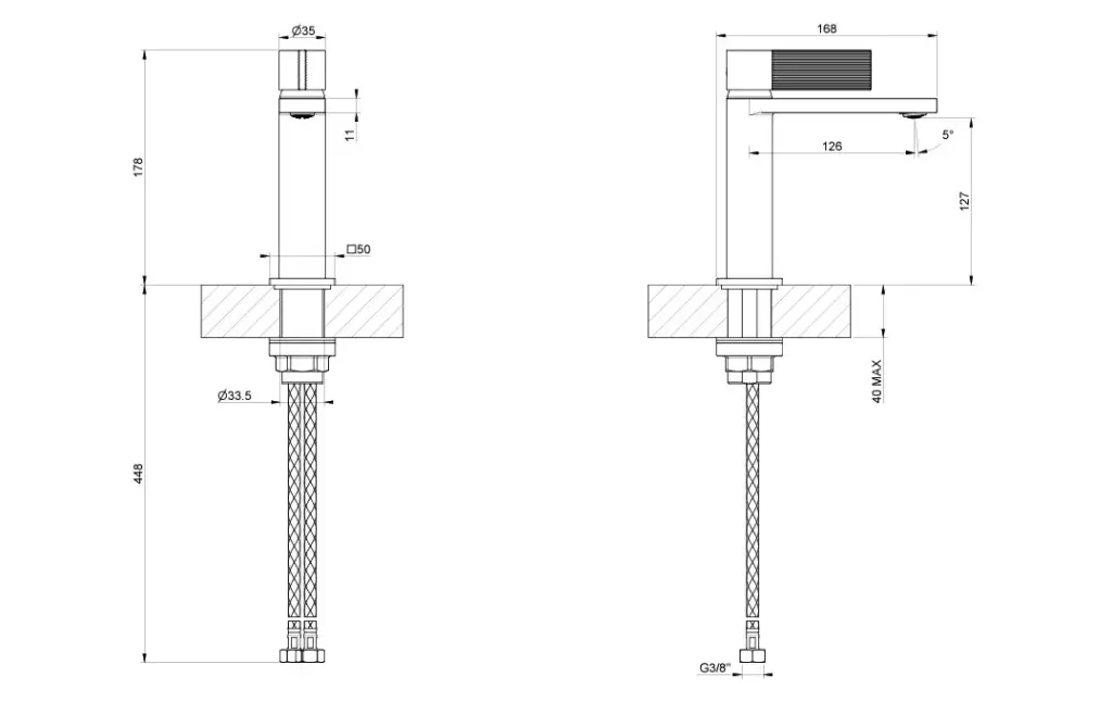 Gessi Inverso Rigato Излив для ванны, настенный, цвет: Matte Black