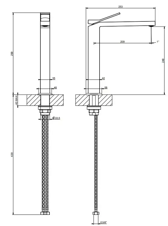 Gessi Rettangolo K Смеситель для раковины, встраиваемый, однорычажный, излив 249мм, внешние части, цвет: Black XL