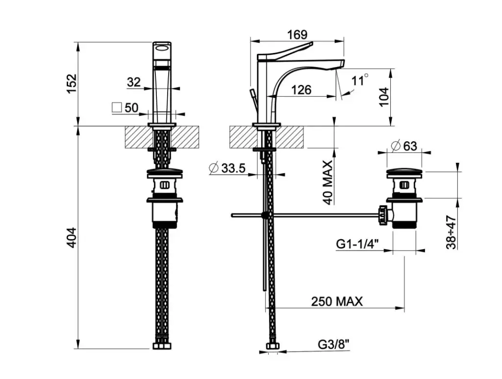 Gessi Rilievo Потолочная душевая головка на 1/2" 250x250 мм, длина изгот. под заказ (105 - 1855 мм), цвет: хром