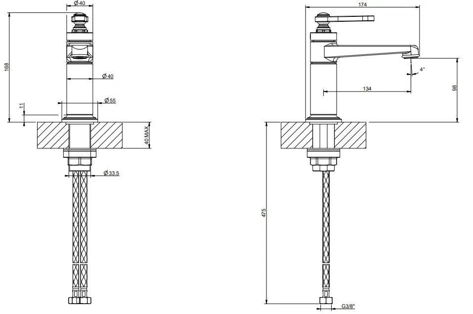 Gessi Venti20 Смеситель для раковины на 1 отверстие, однорычажный, высокий, в комплекте с донным клапаном, цвет: хром