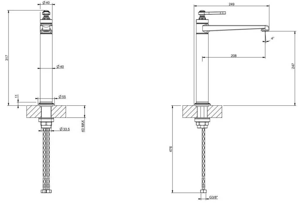 Gessi Venti20 Смеситель для раковины на 1 отверстие, однорычажный, высокий, в комплекте с донным клапаном, цвет: хром