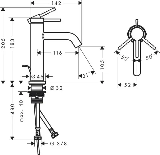 Смеситель для раковины HANSGROHE TECTURIS S 73310000 цвет-хром