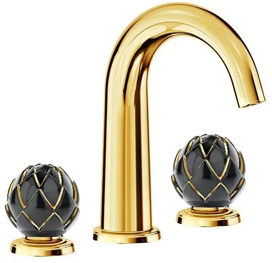 Смеситель для раковины Jorger BELLEDOR 631.30.300.021-36 матовое золото, ручки черный фарфор/окантовка золото