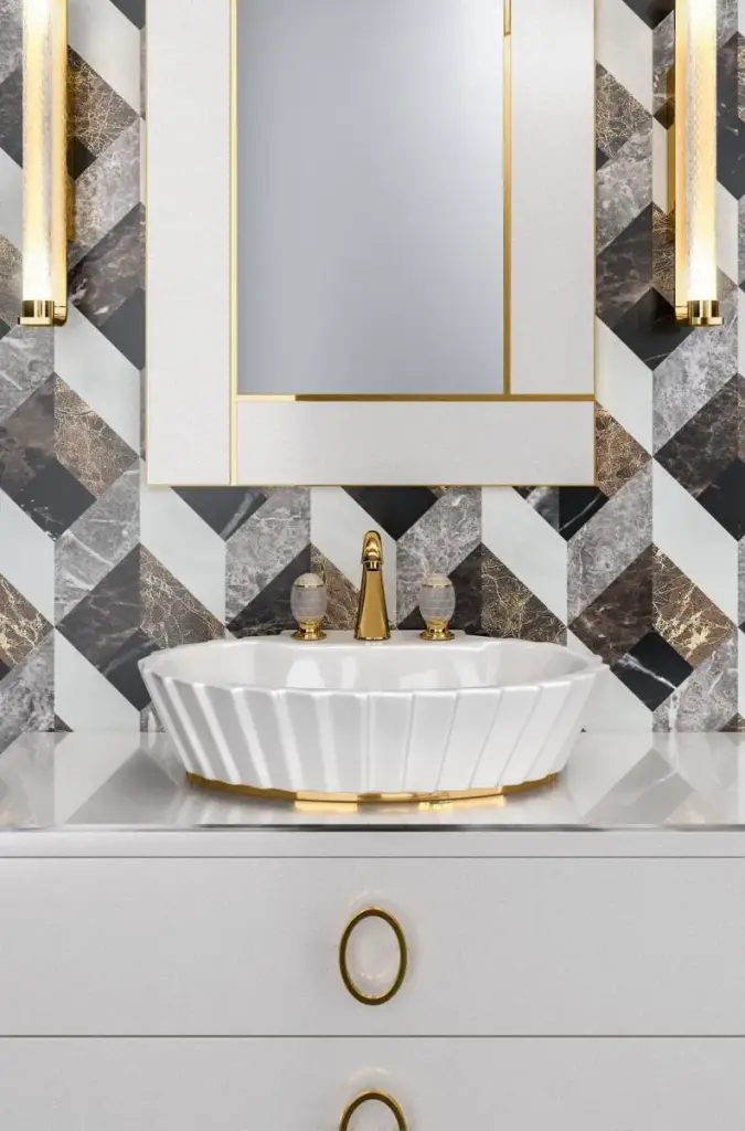 Смеситель для раковины Oasis Venice 000RBVE082OR золото, ручки - муранское стекло