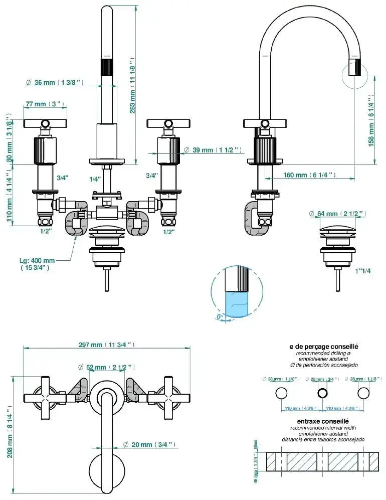 Смеситель для раковины THG ESTRELA U3J.H52.152 золото PVD