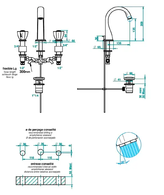 Смеситель для раковины THG PÉTALE DE CRISTAL - RED CRYSTAL U6C.G02.151 хром/золото/красный хрусталь