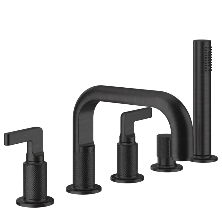 Gessi Inciso+ Смеситель для ванны на 5 отверстий с изливом, переключателем, ручным душем и шлангом 1,50 м., цвет: black XL