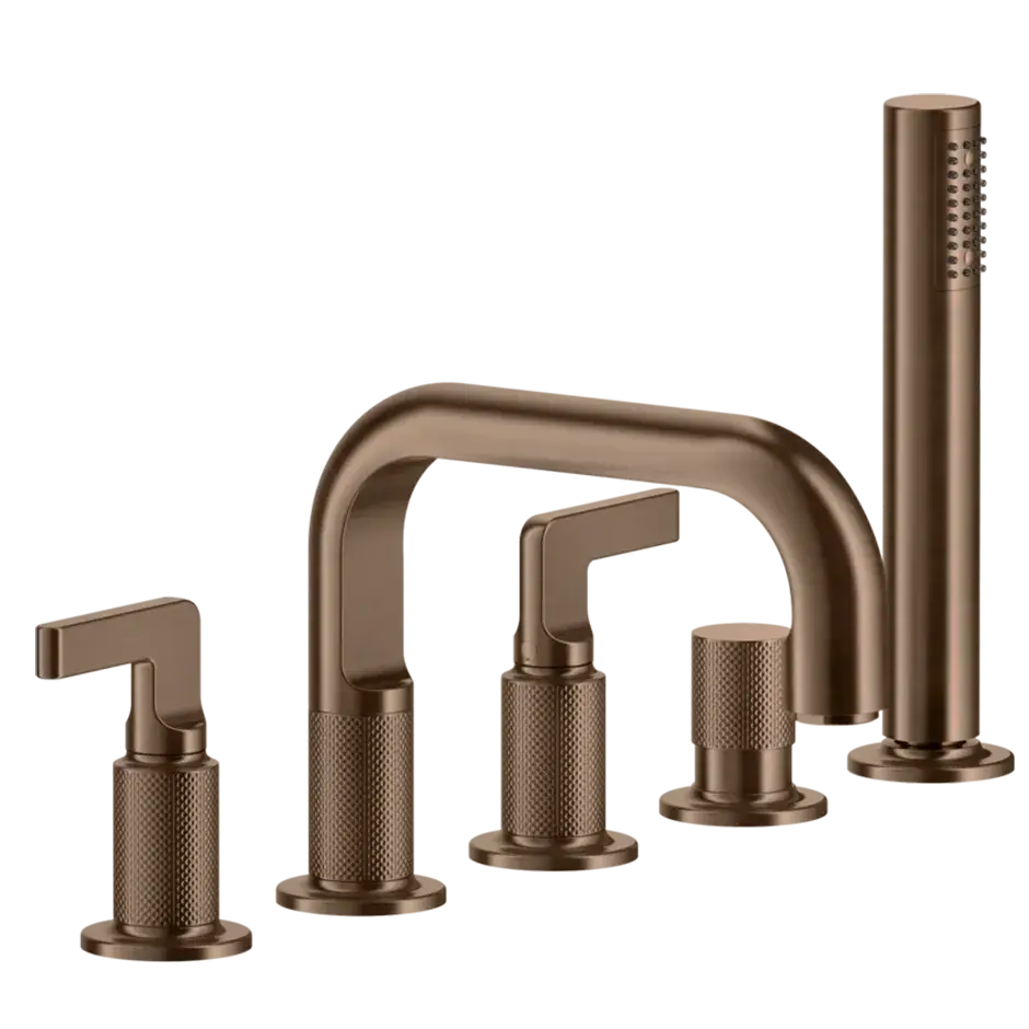Gessi Inciso+ Смеситель для ванны на 5 отверстий с изливом, переключателем, ручным душем и шлангом 1,50 м., цвет: black XL