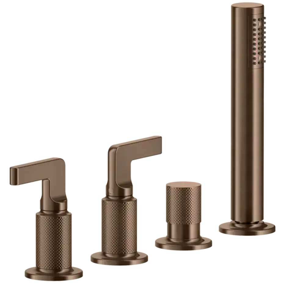 Gessi Inciso+ Смеситель для ванны на 4 отверстия для наполнения через слив-перелив, переключатель, шланг 1,50 м, цвет: black XL