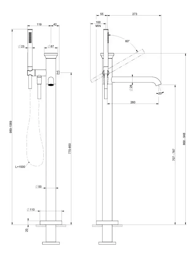 Смеситель для ванны Gessi ORIGINI 66028#720 NICKEL PVD