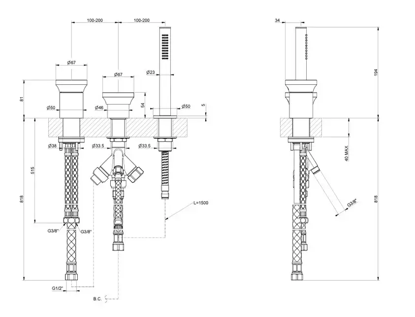 Gessi Origini Смеситель для ванны, встраиваемый, термостатический, цвет: хром