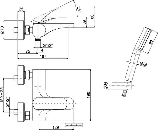 Fima Carlo Frattini Quad Cмеситель для ванны, с душевым комплектом, цвет: черный матовый F3724/4NS